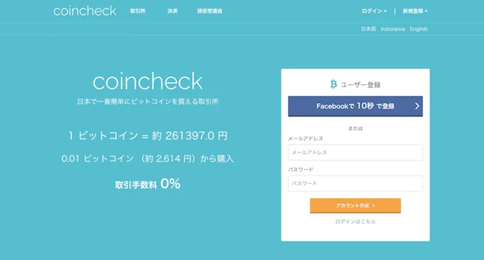 coincheck という仮想通貨取引所についさっき登録してみました。