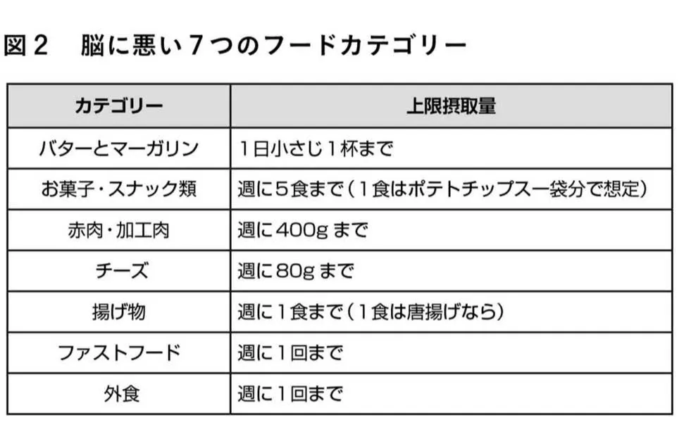 「脳に良い 10 のフードカテゴリー」と似たような感じで、悪いフードカテゴリーもあるためそこに記載のあるものはあまり食べないようにしています。