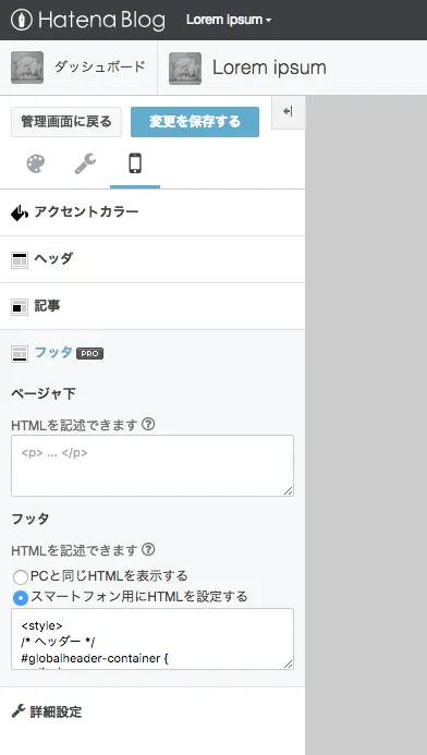 最後に、はてなブログ Pro ではスマートフォンのデザインを詳細に変更できるようになります。