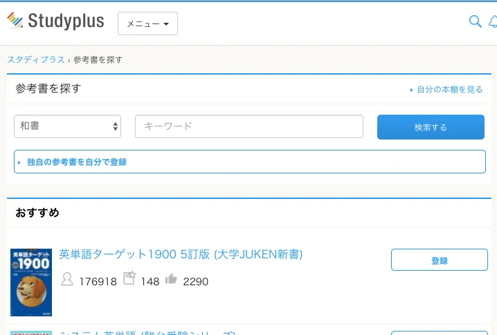自分が使っている教材を Amazon とか本のバーコードから検索して登録する機能がある。